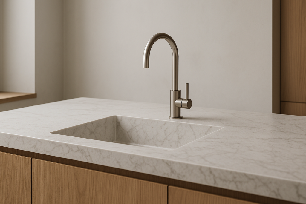 Derfor kan du få bordplader, vaske og vægelementer, der flyder naturligt sammen i ét stykke – uden skarpe kanter eller synlige samlinger.