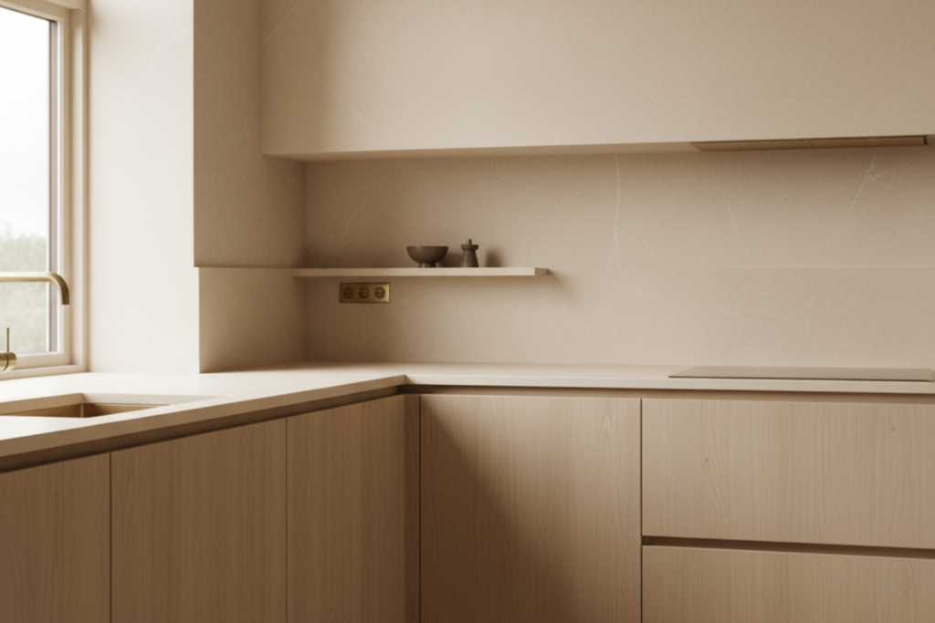 Uanset om du ønsker et køkken med roligt, stenet udtryk eller et spa-badeværelse med formstøbt vask, kan Durasein levere det.
